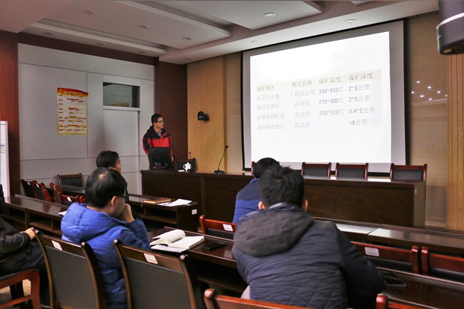 12月26日下午,中国科学院广州地球化学研究所姚军明研究员于J6-530报告厅为永利3044noc师生作了题为《大湖塘超大型钨铜钼矿床解剖及热液矿床中锡铜钼分馏》的学术报告,报告会由韩作振院长主持,学院部分教师及研究生听取了报告。